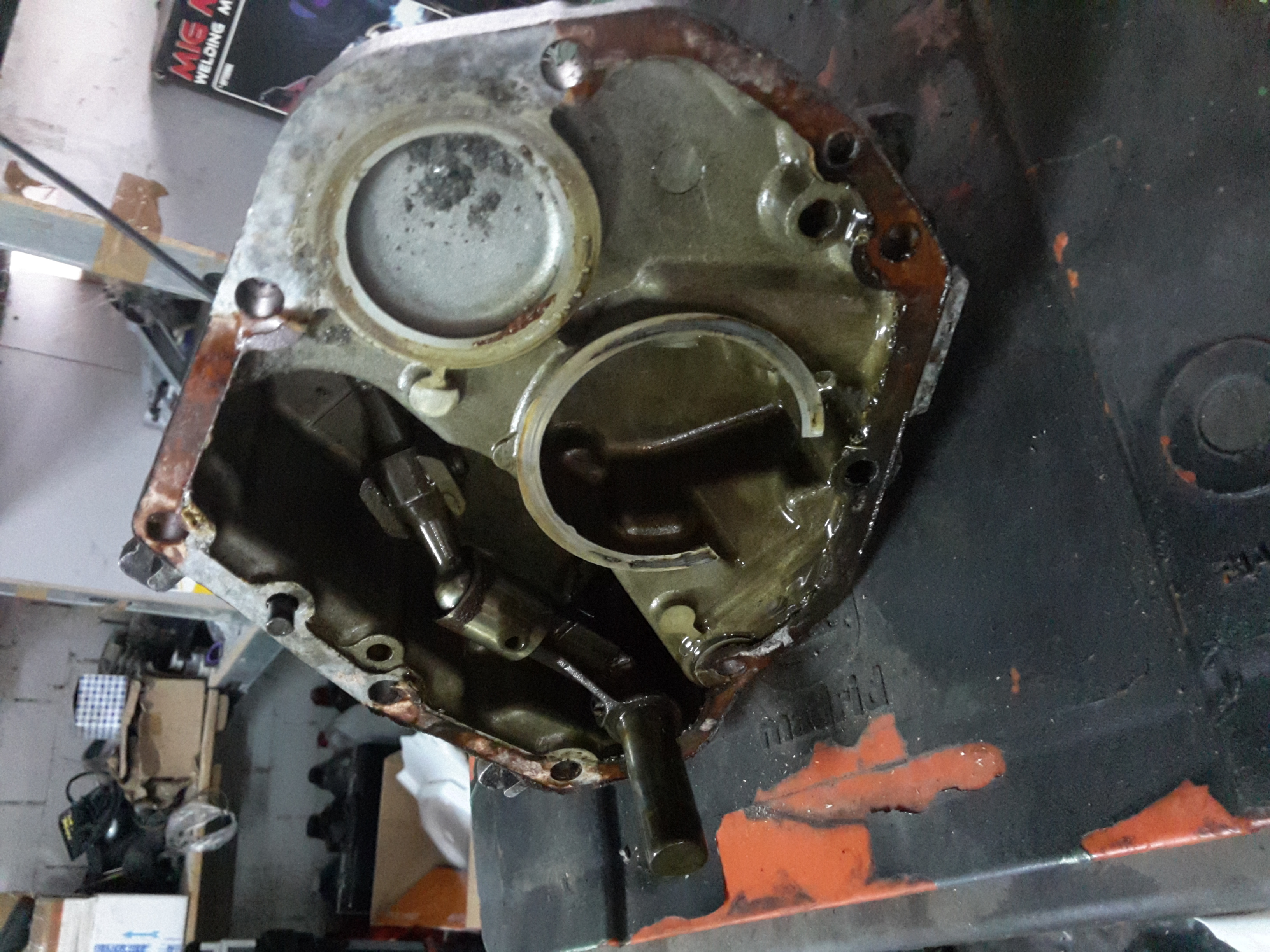 Lo primero que hice fue sacar la caja, aunque para este retén en concreto no sería necesario, con soltarlos soportes traseros ya habría acceso a la tapa, para el retén del primario hay que sacarla si o si