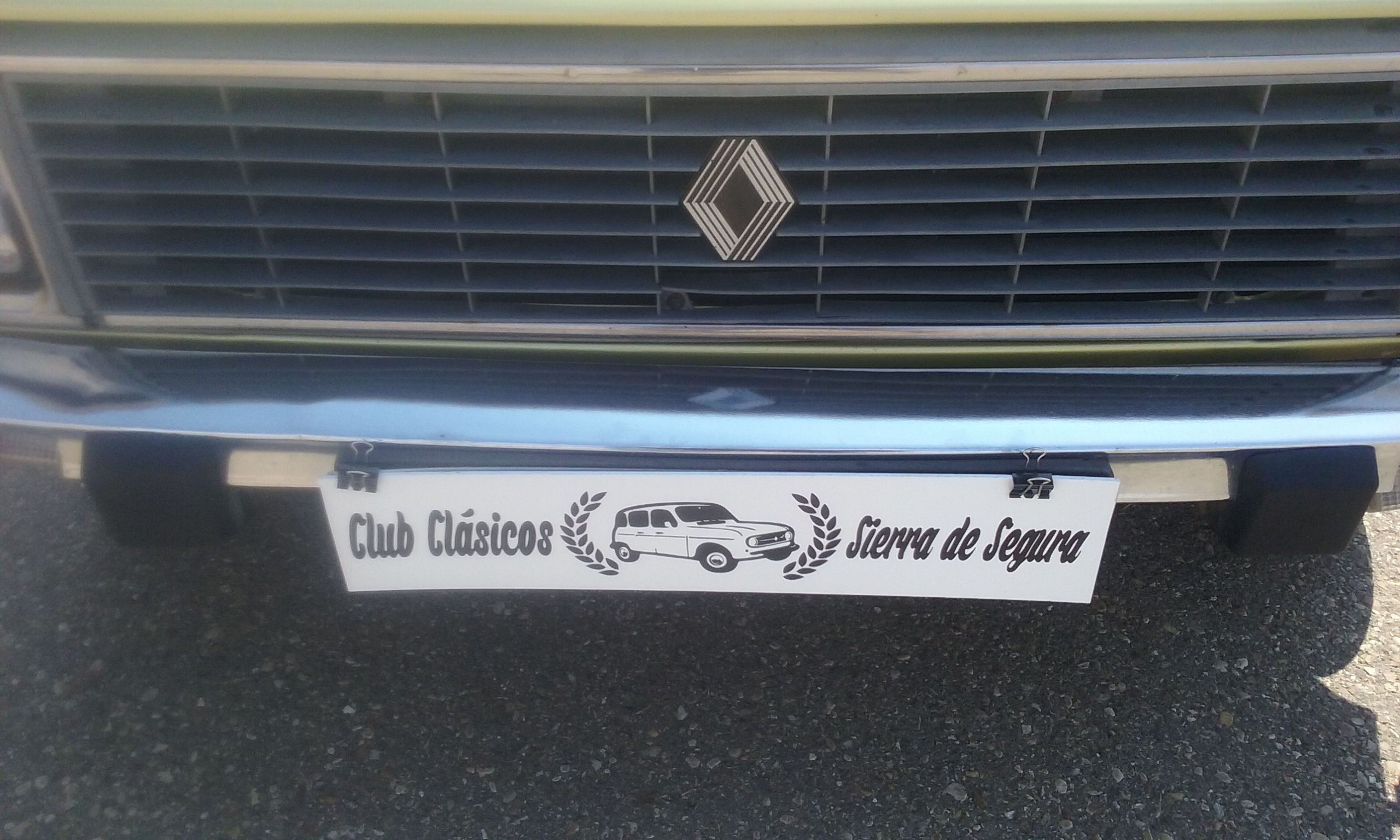 Hace tiempo que conozco a Pedro de Pilar Motor y sé como trabaja de bien. Hace unas semanas ofertó un nuevo producto, un cubrematrículas para tapar la matricula de nuestro coche mientras está aparcado en plan estático (no son aptos para circular con ellos puestos por razones obvias), asi que ni corto ni perezoso le encargué dos versiones, una con el logo del club y otra con el de Clásicos Sierra del Segura y he aqui el resultado...a ver que os parece. Vienen con unos pequeños imanes de neodimio pero tienen el inconveniente de que en aluminio no pegan...las pinzas negras son una solución que estoy ensayando y da buen resultado siempre y cuando exista un pequeño hueco entre placa y carrocería. Será cosa de darse una vuelta por la tienda de los chinos a ver si hay algo mejor para sujetarlo