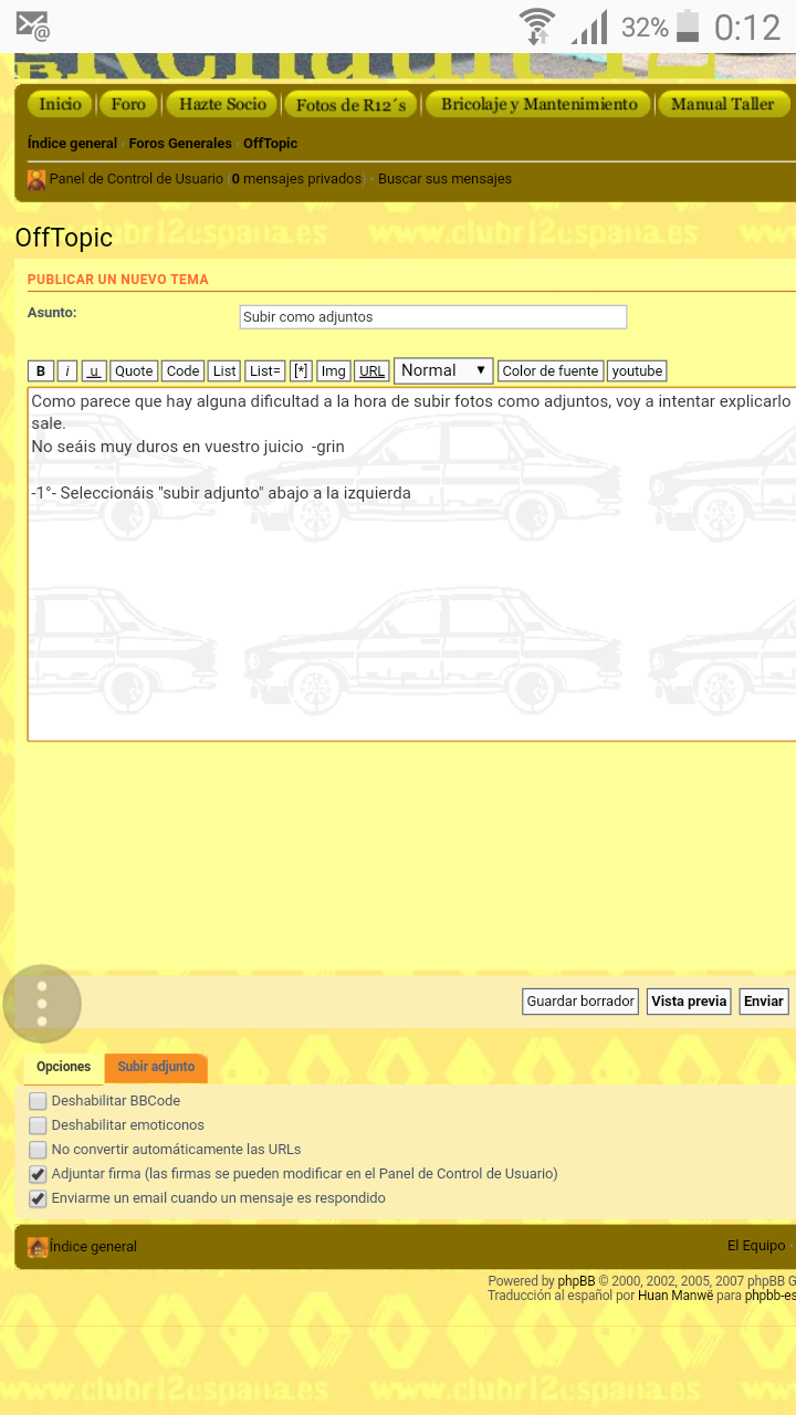 Como parece que hay alguna dificultad a la hora de subir fotos como adjuntos, voy a intentar explicarlo paso a paso con fotos. A ver que sale.