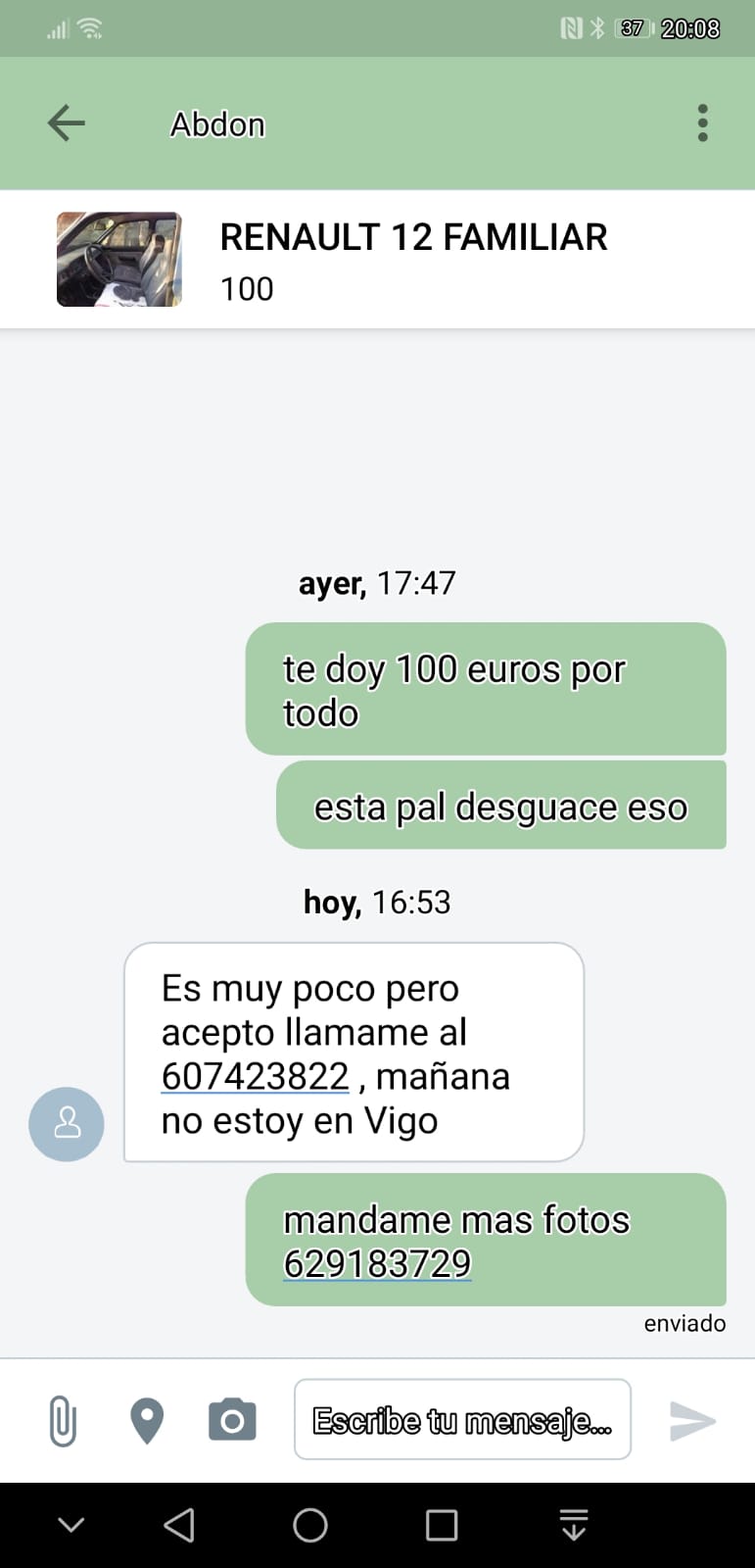 El paisa pide 500 por el completo, pero acepta ofertas bastante mas bajas. La verdad es que se ve muy destruido, pero algo habrá que se aproveche.