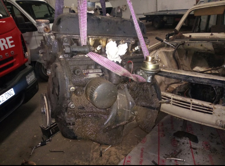 Antes de quitar el motor me informe sobre si se podrían sacar papeles de nuevo , porque era una unidad escasa y valía la pena rehabilitar.Como las respuestas fueron todas negativas y que solo podría tener pegas para darlo de alta ya decidí de que el bloque va a sustituir el del 12 S aunque el código motor del ranchera era 810-97.Como ya tenía ganas de ver y saber porque lo habrían parado ,saque bujías y lo deje a remojo unos días con aceite en la cabeza del piston.Despues de unos días vuelta a mano y llamada a mi compi ,la máquina cubana