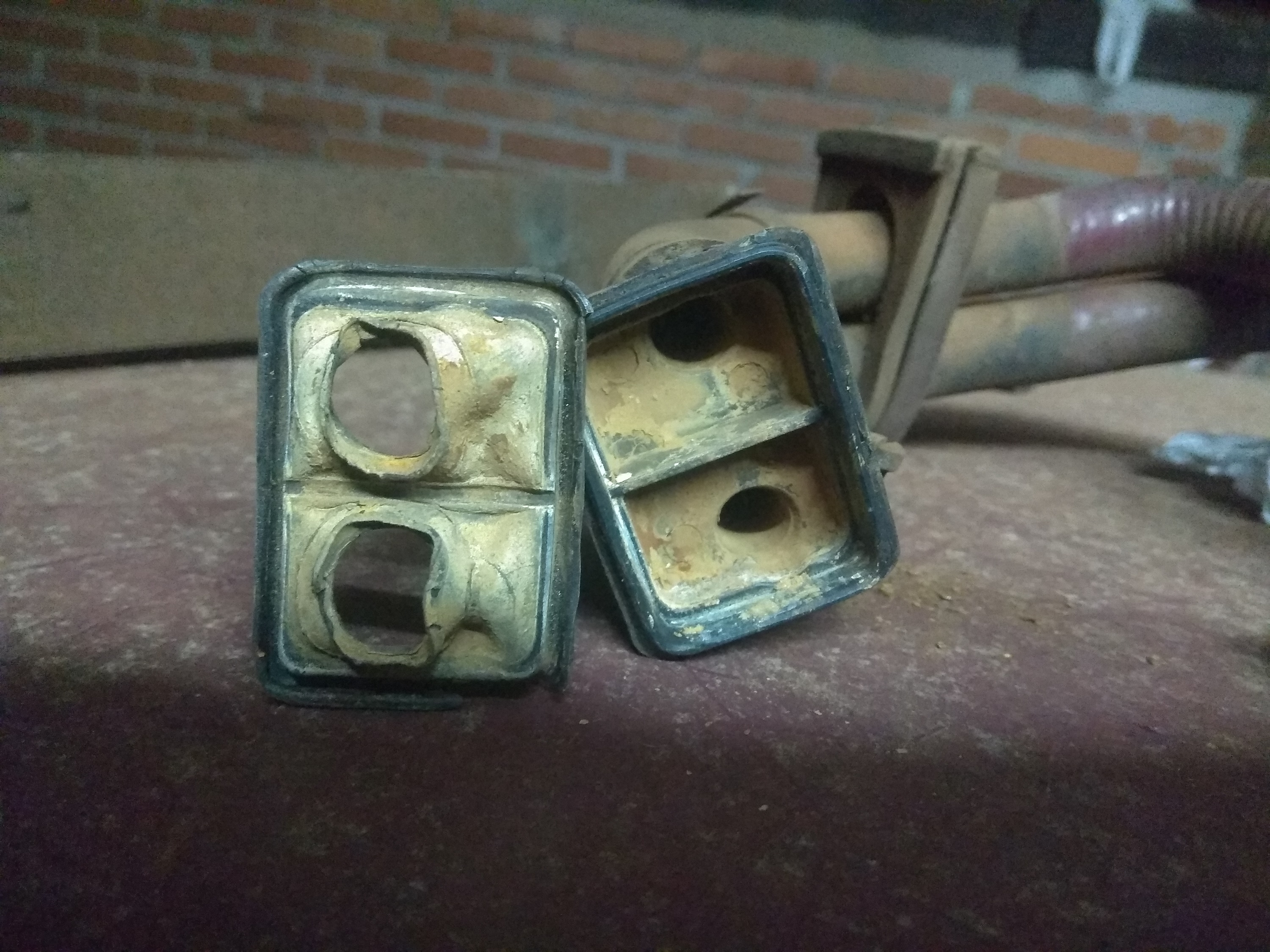4) Cuando lo saqué, probé a pulmón si había alguna fuga, y la había, así que desarmé del lado del grifo, la junta esta en muy malas condiciones y no creo que se pueda conseguir, así que mi idea es usar 2 mangueritas de menor diámetro que vayan dentro de los conductos del radiador de calefacción y dentro de las 2 mangueras que vienen del grifo.. Al final, la fuga no era ahí, sino del grifo que deja pasar un poquito (muy poquito) de aire cuando soplo.. Pero bueno..