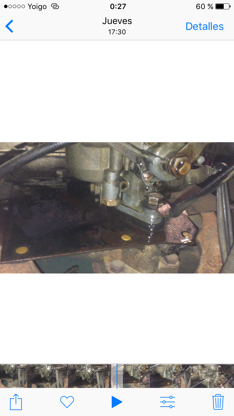 Me pierde a goteo de forma bastante constante cuando el coche está funcionando y tambien sigue perdiendo una vez parado (imagino que hasta que se vacía el buffer del carburador).