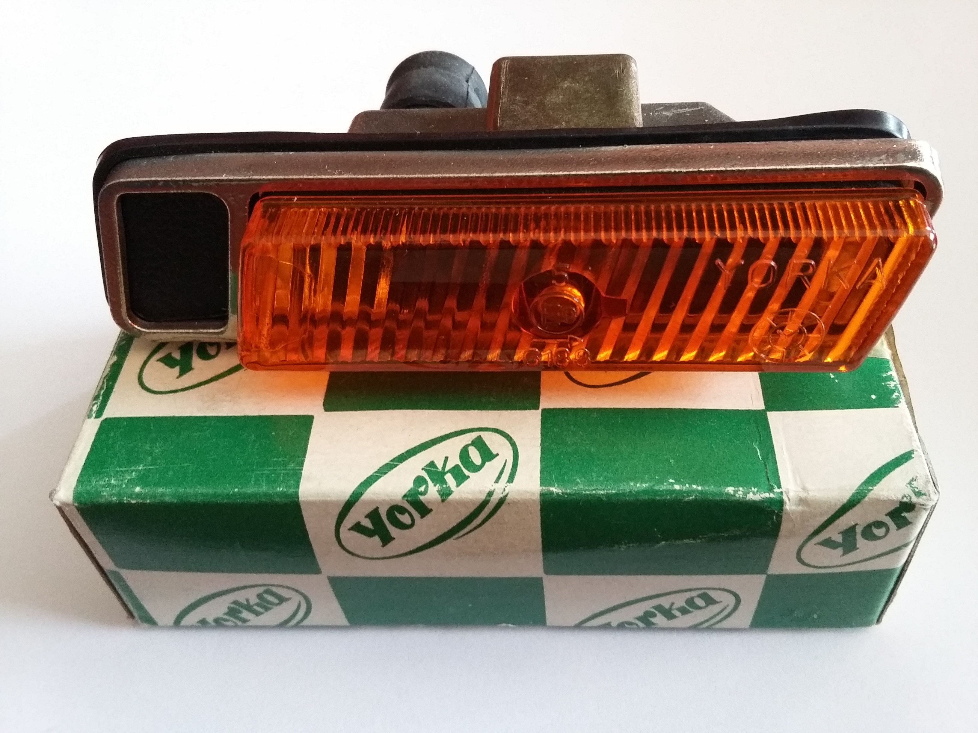 También dispongo del intermitente original de la aleta derecha del Renault 12 TS (primera serie). Está en perfecto estado y es de la marca Yorka. Se entrega en su caja original.