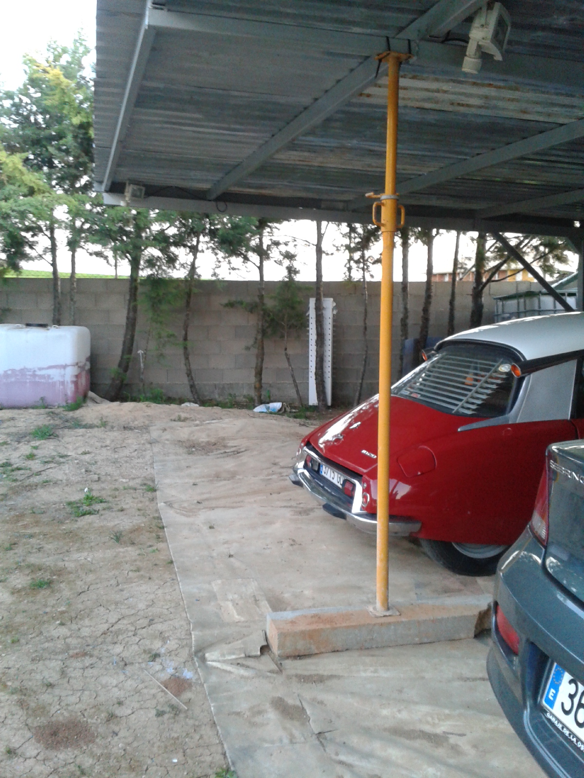 Probando el pilar desmontable, que estorba un montón para cualquier maniobra, y el bordillo de soporte, que no estorba apenas porque los coches pasan por encima sin rozar... en fín....