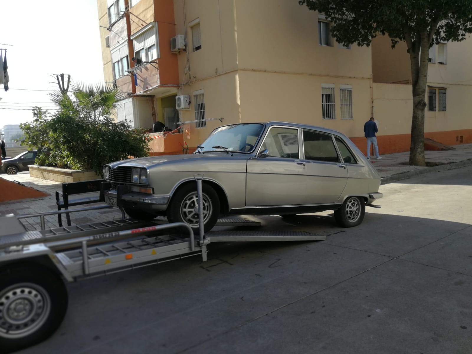 En estos dias están tramitando el alta a mi nombre. En cuanto consiga que esa caja de cambios tan tozuda deje entrar la 3ª,4ª 5ª y marcha atrás le haré la oportuna sesión de fotos. Os acompaño una de cuando lo tuvimos que subir a golpe de winch manual a la plataforma (el motor he logrado que arranque hace solo unos dias)