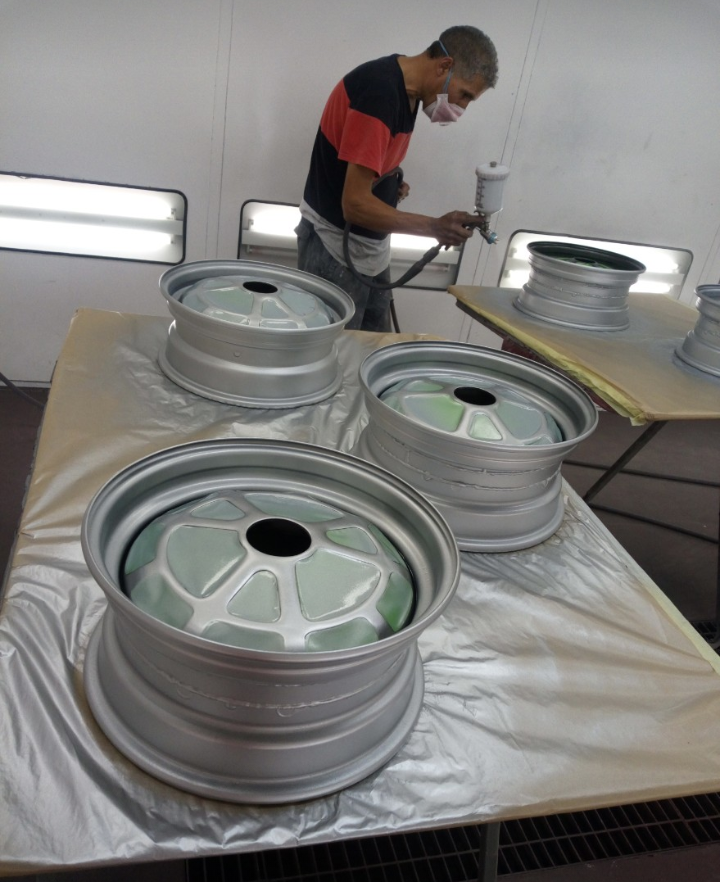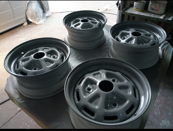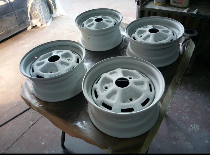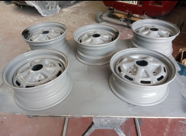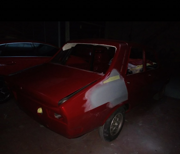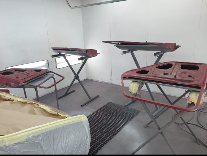Los pintores decidieron de pintar todo montado y después del pintado interior se volvieron a montar las puertas y las aletas. Cometieron un gran fallo de no probar de nuevo los cerquillos en el montaje final y al montar el coche me dieron dolor de cabeza,entre el frontal que no era original y todo tuve que ingeniar