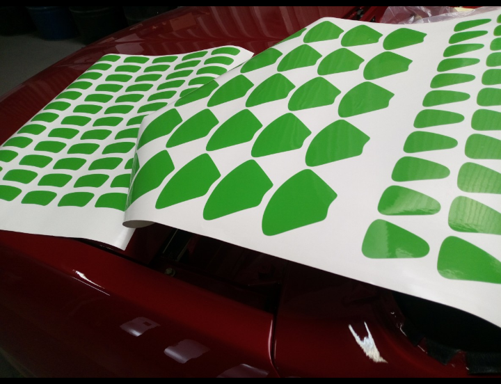 En mi caso opte por la parte francesa ,elegí el 614 antracita y 620 gris aluminio Con la granalla había saltado todo el óxido posible que había en los bordes ,entonces los bordes se quedaron un poco dañados y sin cantos y me fue difícil empapelar con papel de carrocero.Viendo que la cosa no iba bien tuve que llamar a un amigo que hace rotulación para que me haga unas pegatinas,era la única manera de adelantar ya que faltaba una semana para la gran concentración. Aquí también tuvimos problemas porque la máquina que tenía no le iría bien para hacer la plantilla, tuvimos que hacer unas plantillas a mano y luego pasarlas al ordenador para escanear. Las grandes no salieron bien pero con las pequeñas tuvimos un problemilla, salieron de tres medidas y habido quiere recortar más de alguna