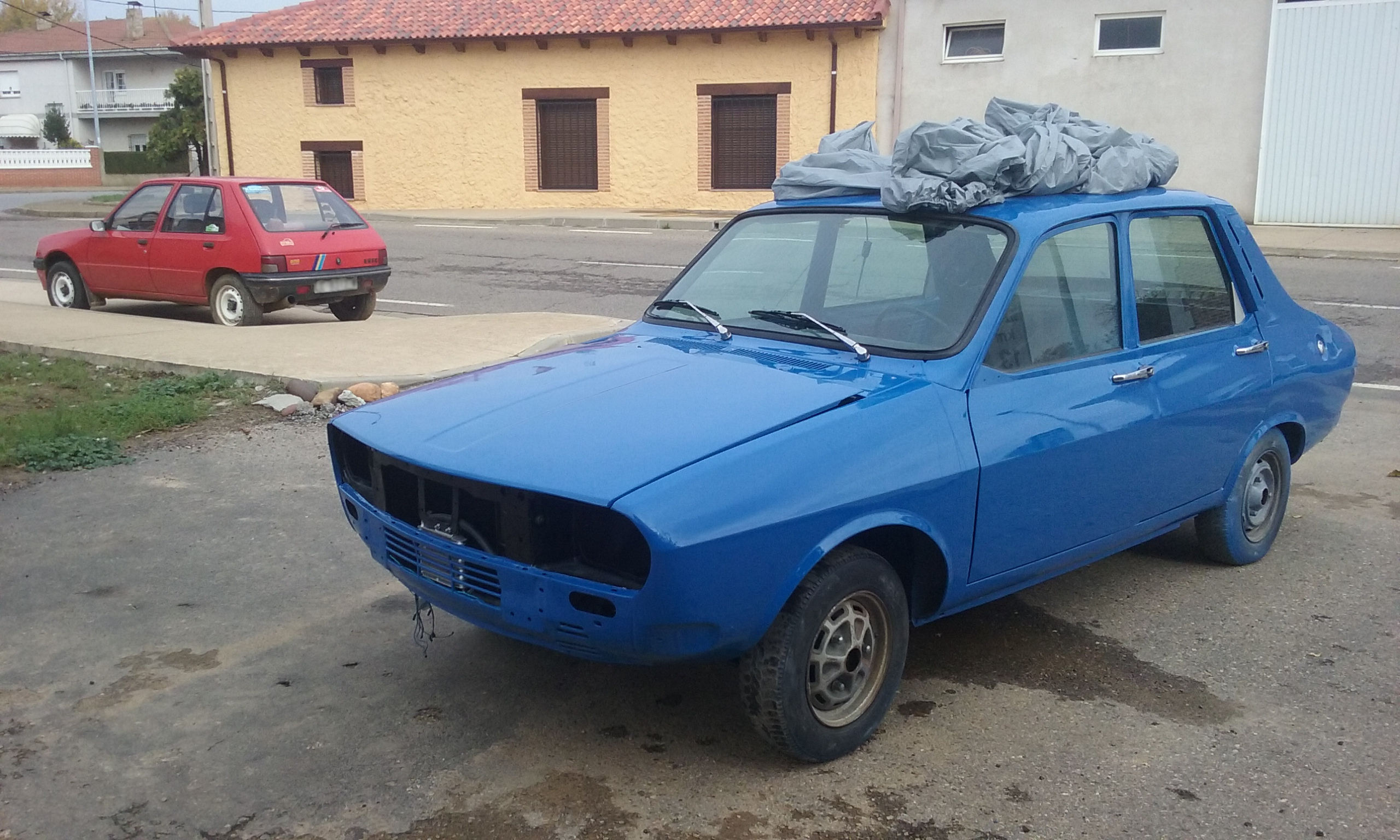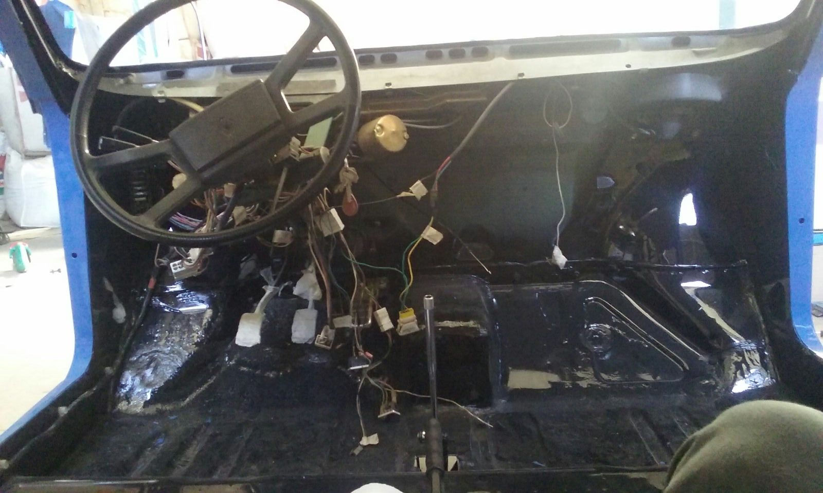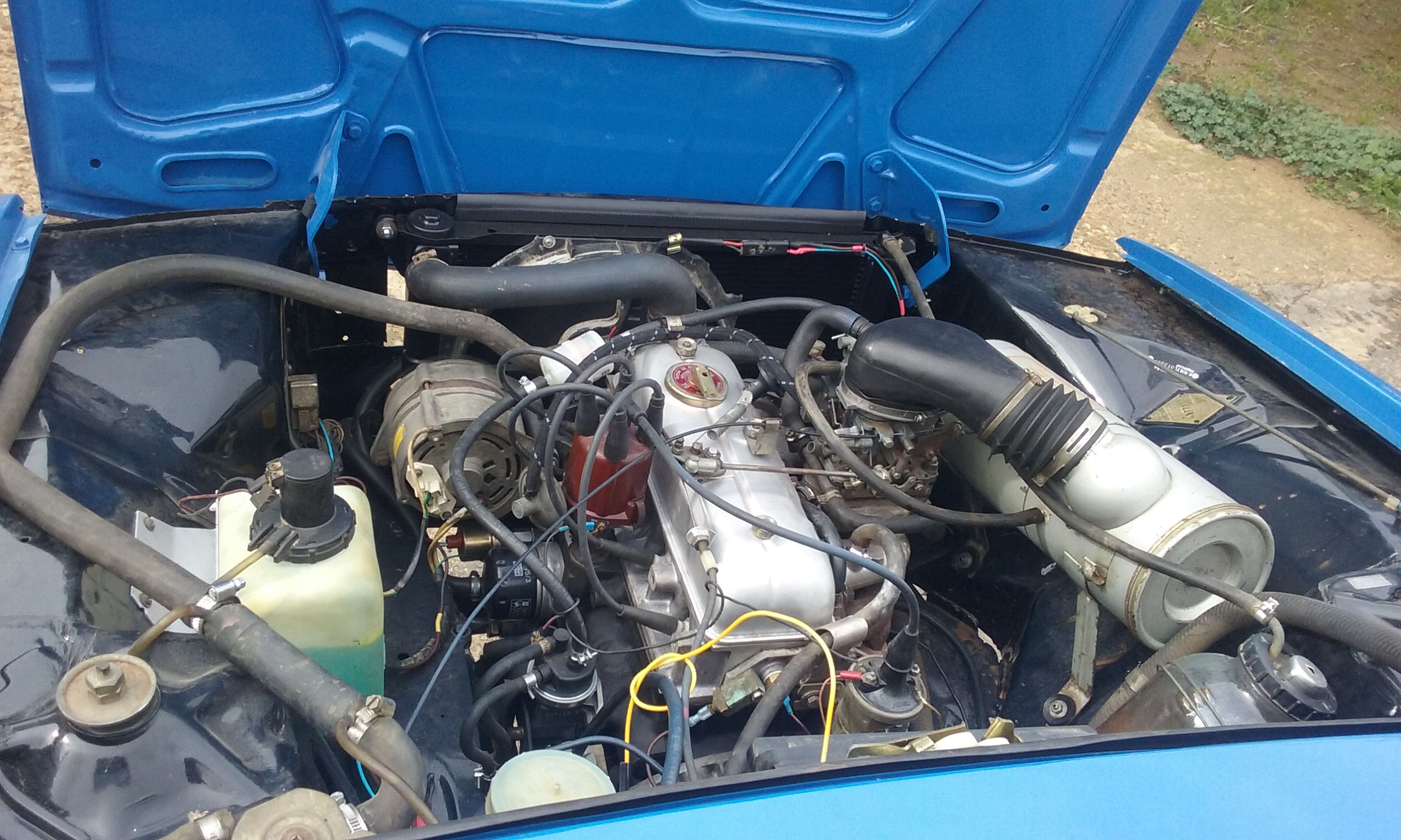 Llega la hora del montaje, primero el cableado, de un TS, me pareció mejor al ir mas protegido independientemente con fusibles, aunque vaya obra adaptar los conectores del cuadro de instrumentos. También instale un cortacorrientes que actúa como desconectador de batería en el interior del coche, por si se tiene parado por periodos largos que no se descargue la batería. Luego el motor, al que antes había cambiado juntas, reparado la culata, pintado y limpiado interior y exteriormente, por dentro tenia una especie de barro del aceite que creo que no era normal pero bueno, supongo que residuos de aceites minerales. Una vez instalado correctamente y comprobado que arranque, no vaya a ser... ¡A montar puertas, aletas y capós! Llevaba mas trabajo del previsto para ajustarlo todo. Las aletas las pegue con una silicona especifica para que no entre el agua y humedad por donde no debe. Las puertas, taloneras y aletas traseras les aplique cera de cavidades para evitar la corrosión interior, no son antes darles un buen "baño" de convertidor de oxido, toda precaución es poca.