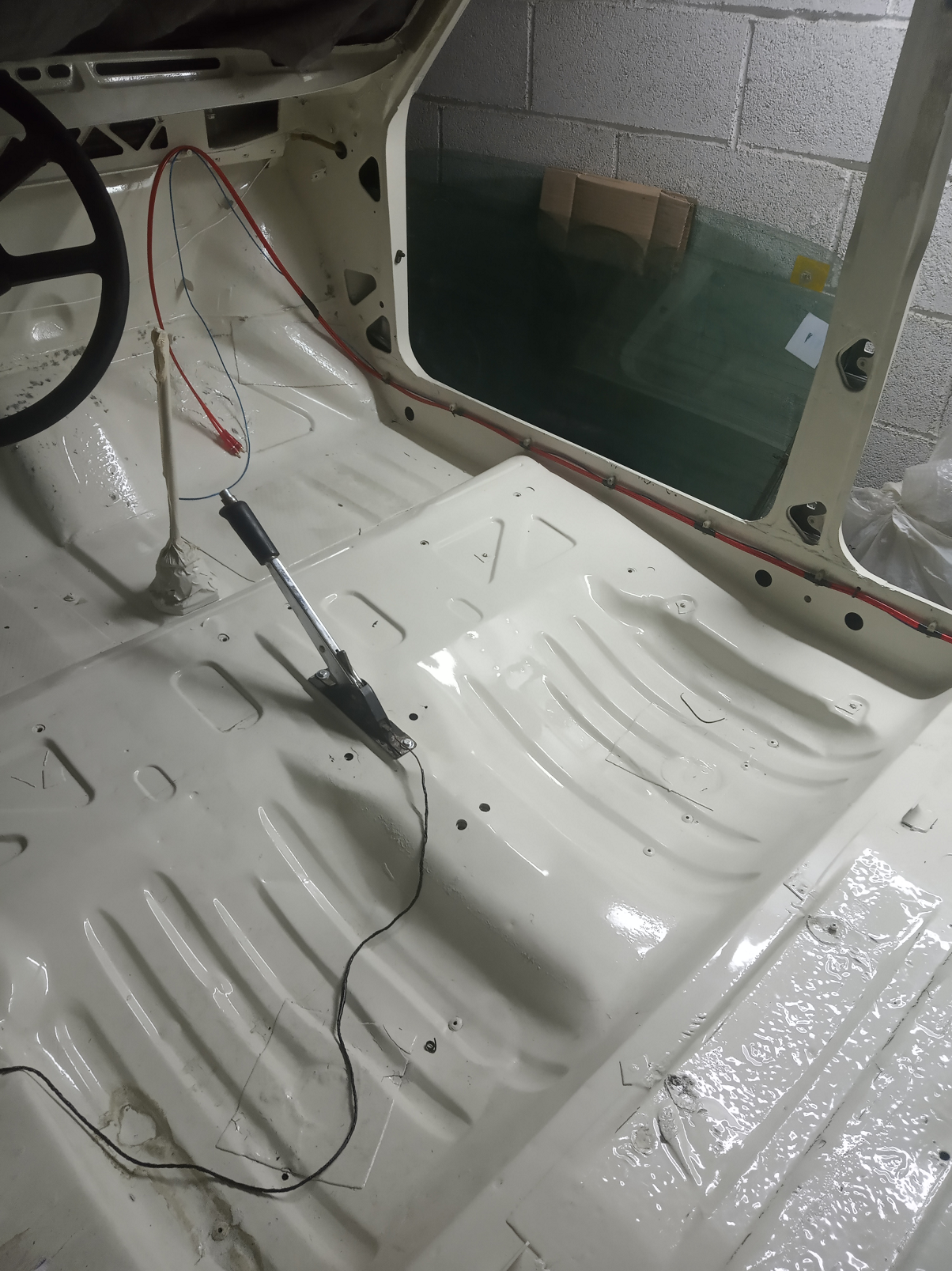 Freno de mano, es lo ultimo que llevo hecho. Esta un poco provisional por que me lo ha pedido la tapicera, ya que se lo llevo el sábado 29 para hacer el resto del coche