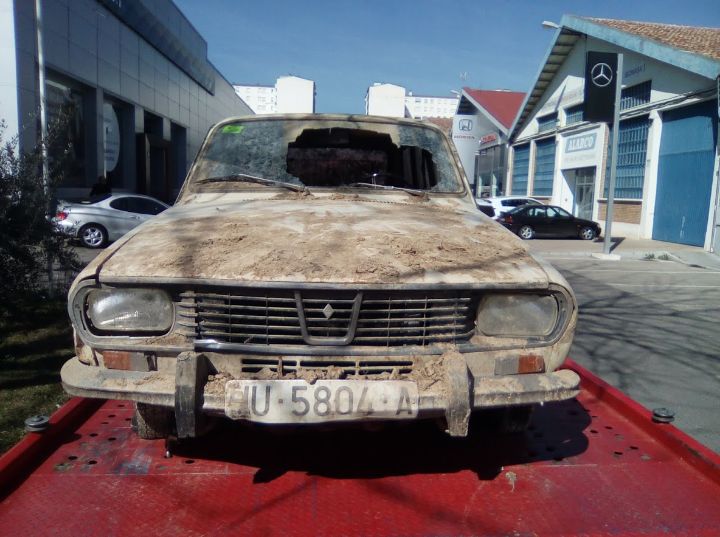 En el trascurso de estas dos semanas de vacaciones mientras luchaba con los bajos del coche,un día me amanece en el WhatsApp una foto de este Renault 12 ranchera primera serie.Evidentemente me la manda un familiar y nada más ver la foto ya le llamé para ver qué pasaba con el vh.Pues fue fácil!!coger 100€, una grúa , recorrer 60km ,pagar un almuerzo y sacar el vh de una nave abandonada dónde ellos tenían que empezar una rehabilitación.En aquellos momentos solo pedía que tenga el motor ,el cristal delantero y las llantas.Finalmente llegado ahí encuentro los propietarios nuevos y me dijeron que el vh se dio de baja hacia unos 15,18 años atrás y que no tenía ya ninguna clase de papeles TODO TUYO,SOLO SACALO DE AHI,