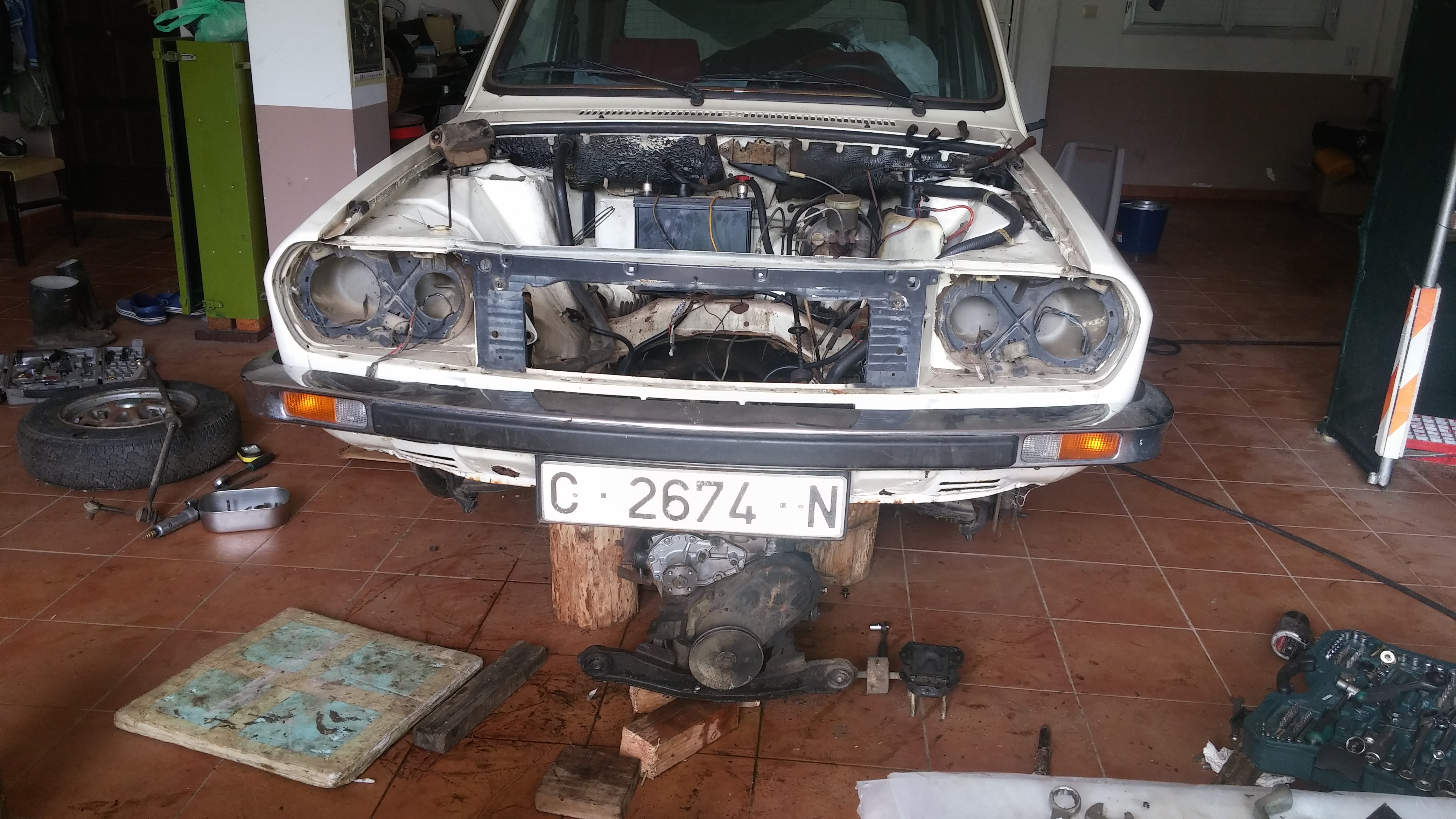 A falta de algunos retoques el motor esta listo para volver a su sitio Seguidamente vaciamos interior y desmontamos puertas, pilotos molduras... Es todo por el momento, ahora estamos comenzando a reparar los desperfectos de la chapa y varios puntos de corrosión que presenta. Ire subiendo más fotos a lo largo de estos días. Saludos.