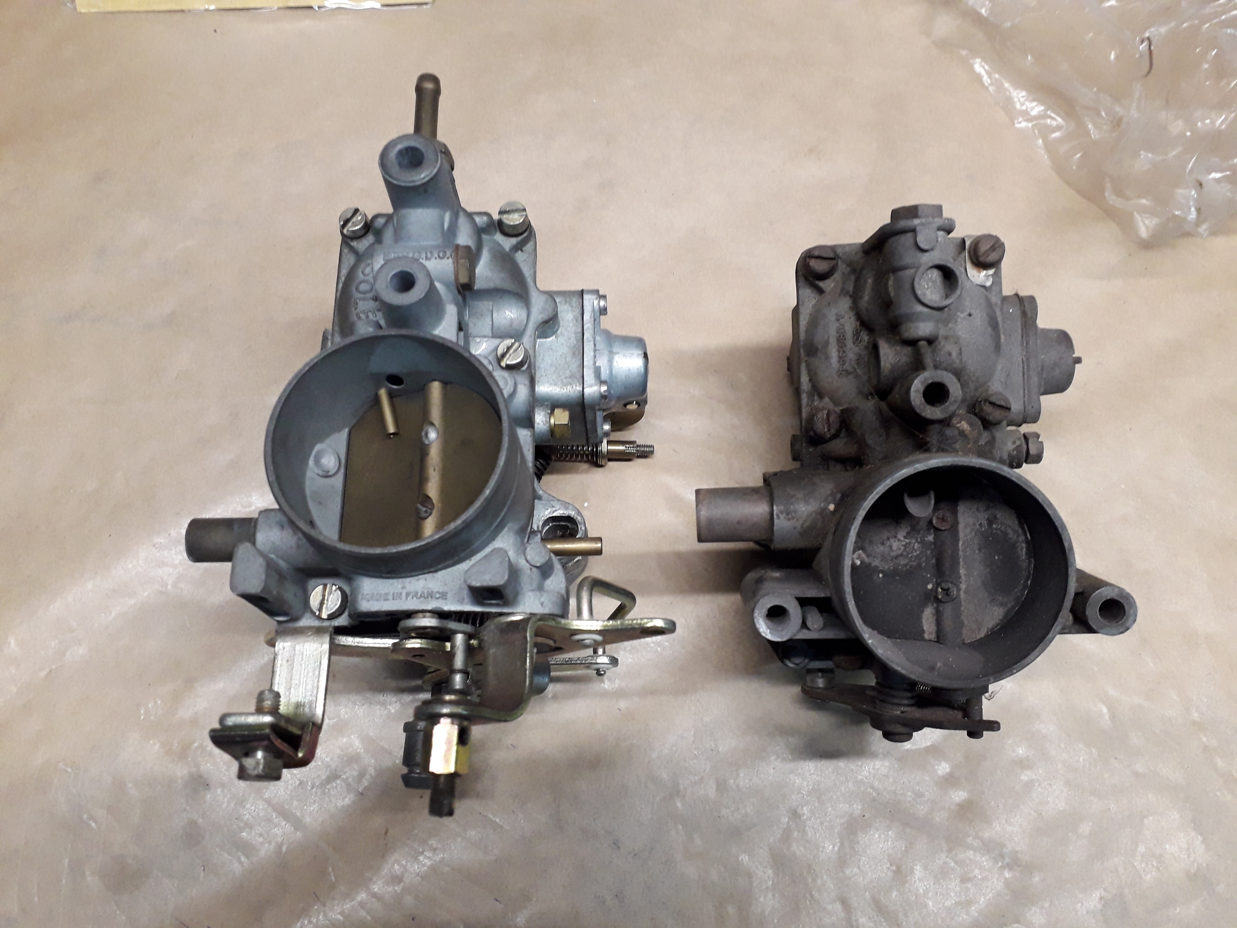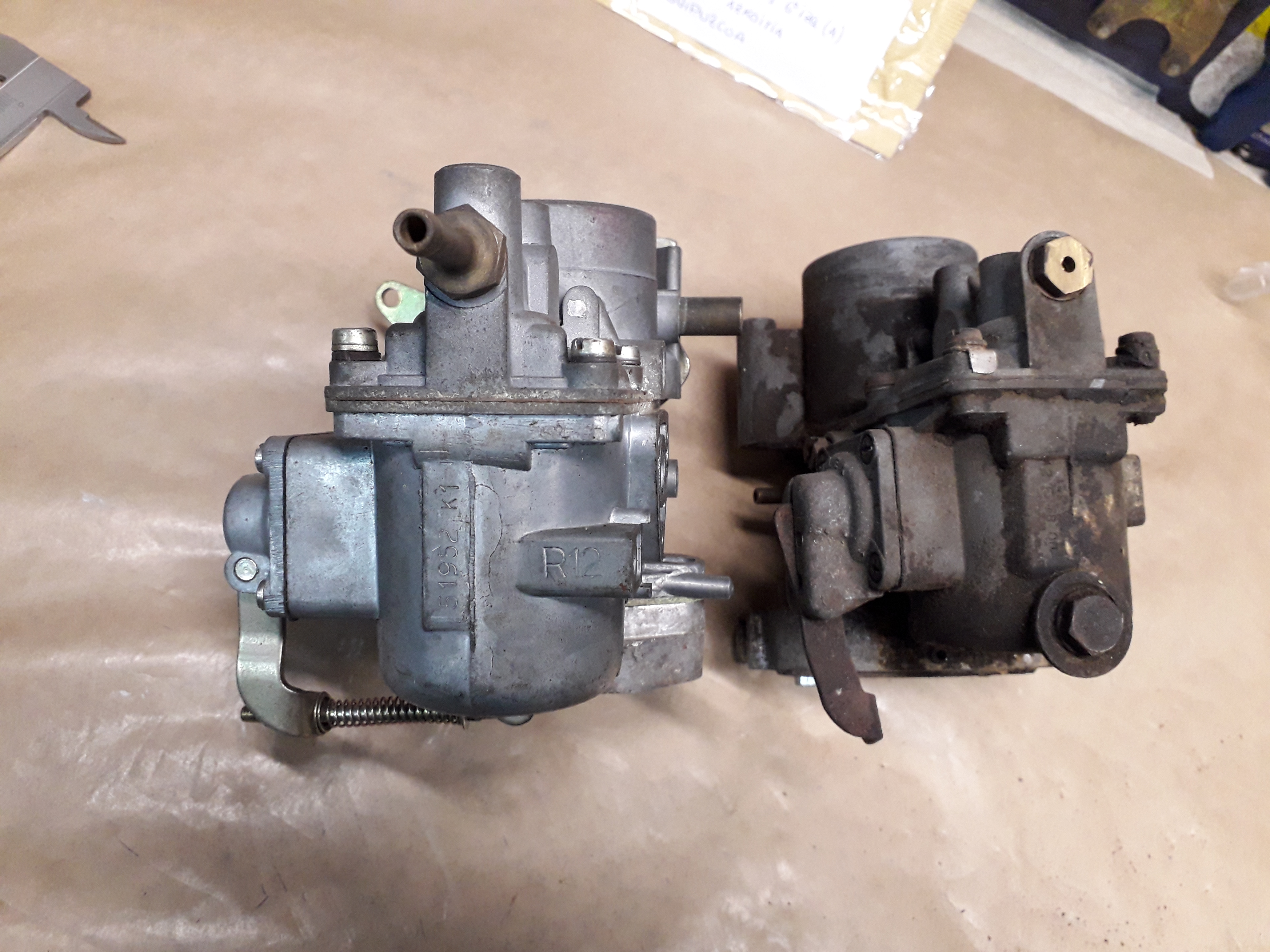 Tambien tengo uno usado de un R12 TL de 1972, le falta el mando de aceleración porque se lo quité para hacer una acoplación en otro carburador de otro 12 que tuve. Pero lo desmonté funcionando, aún conservo los colectores de admisión tambien.