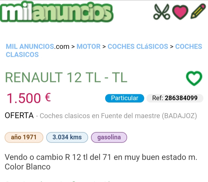 R12 TL de 1971 con techo de vinilo (1500€)