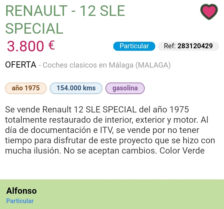 Hola. Un r12 sle de 1975, totalmente restaurado por 3600 euros, consideráis que está en precio o caro? Gracias