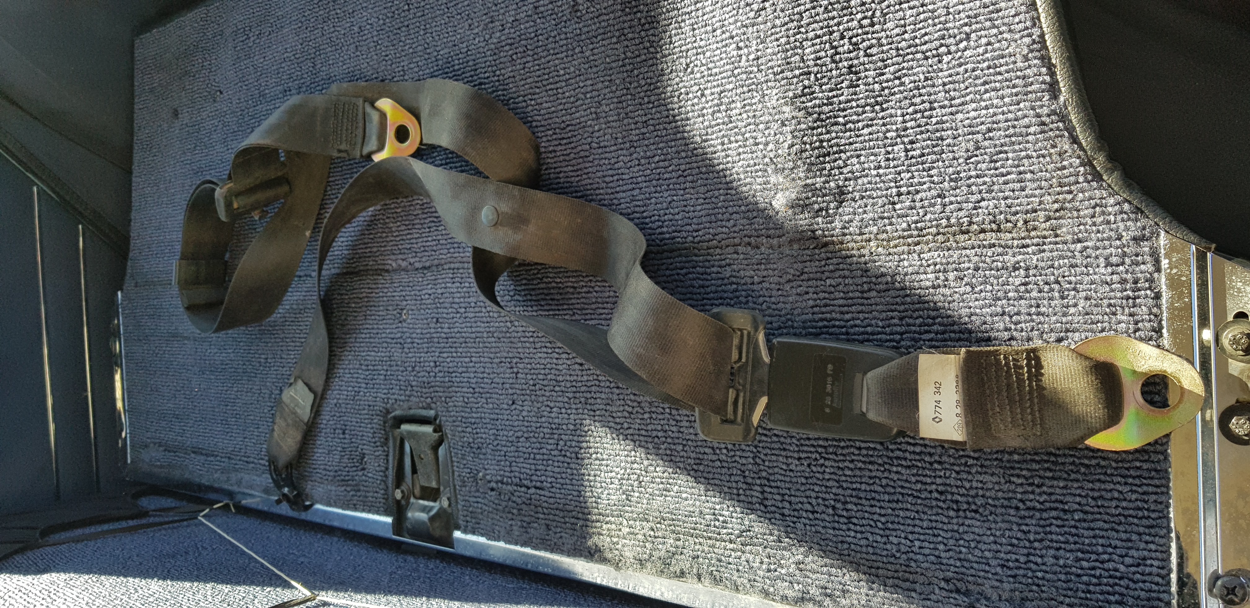 Estos dias con la ayuda de mi padre hemos montado cinturones traseros al r 12 . Los cinturones son de un supercinco donante son estos de la foto