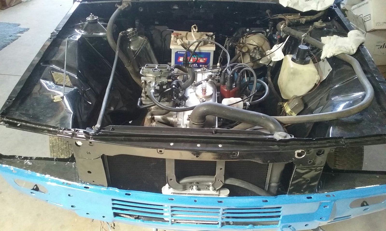 Llega la hora del montaje, primero el cableado, de un TS, me pareció mejor al ir mas protegido independientemente con fusibles, aunque vaya obra adaptar los conectores del cuadro de instrumentos. También instale un cortacorrientes que actúa como desconectador de batería en el interior del coche, por si se tiene parado por periodos largos que no se descargue la batería. Luego el motor, al que antes había cambiado juntas, reparado la culata, pintado y limpiado interior y exteriormente, por dentro tenia una especie de barro del aceite que creo que no era normal pero bueno, supongo que residuos de aceites minerales. Una vez instalado correctamente y comprobado que arranque, no vaya a ser... ¡A montar puertas, aletas y capós! Llevaba mas trabajo del previsto para ajustarlo todo. Las aletas las pegue con una silicona especifica para que no entre el agua y humedad por donde no debe. Las puertas, taloneras y aletas traseras les aplique cera de cavidades para evitar la corrosión interior, no son antes darles un buen "baño" de convertidor de oxido, toda precaución es poca.