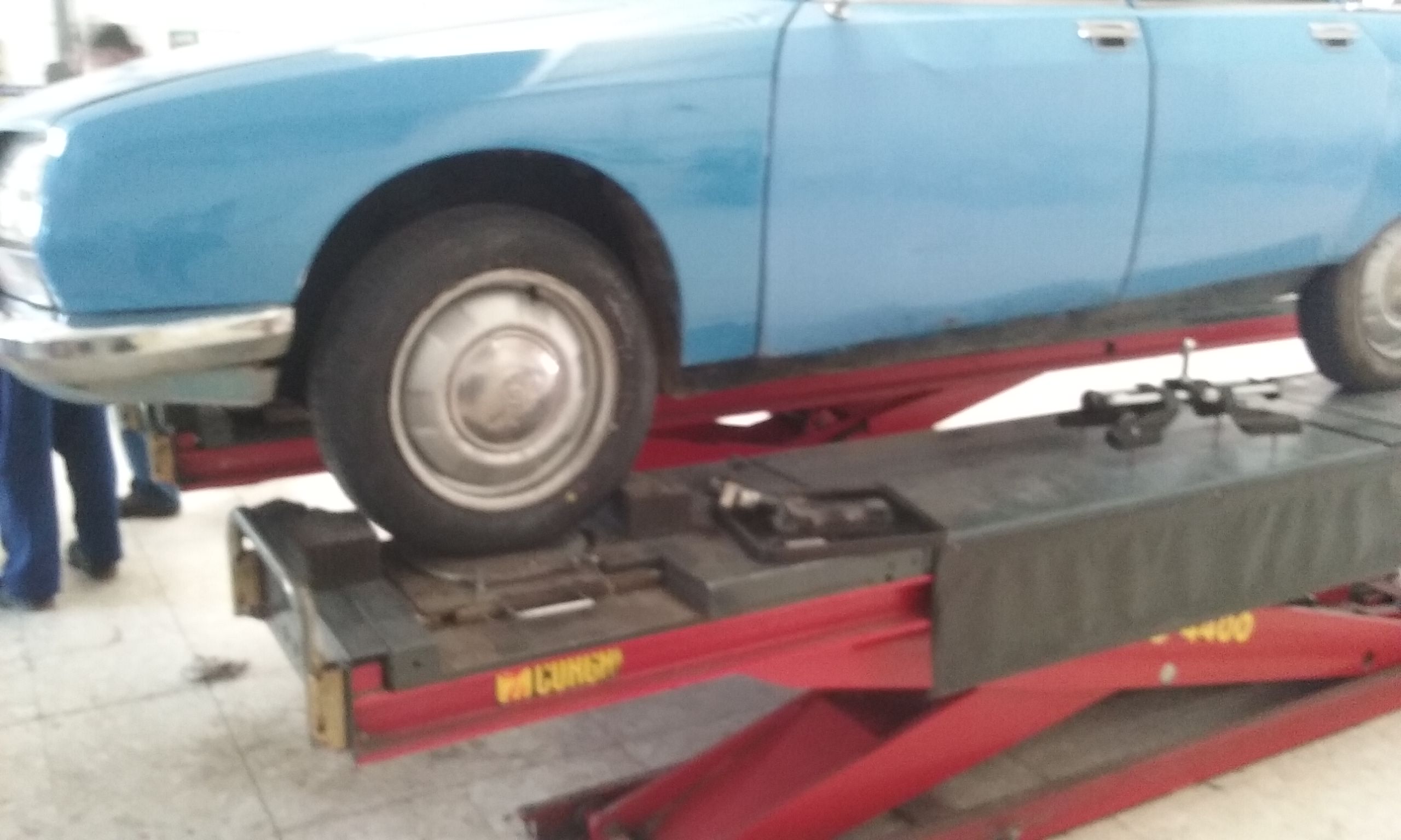 Ahora ya con ambas ruedas delanteras nuevas y perfectamente alineadas el coche se conduce como una balsa,sin ruidos ni tirones extraños en el volante. Como dato curioso decir que para que el coche conserve la altura mientras se realiza el reglaje de las caidas y convergencias debe estar arrancado para evitar falsear datos