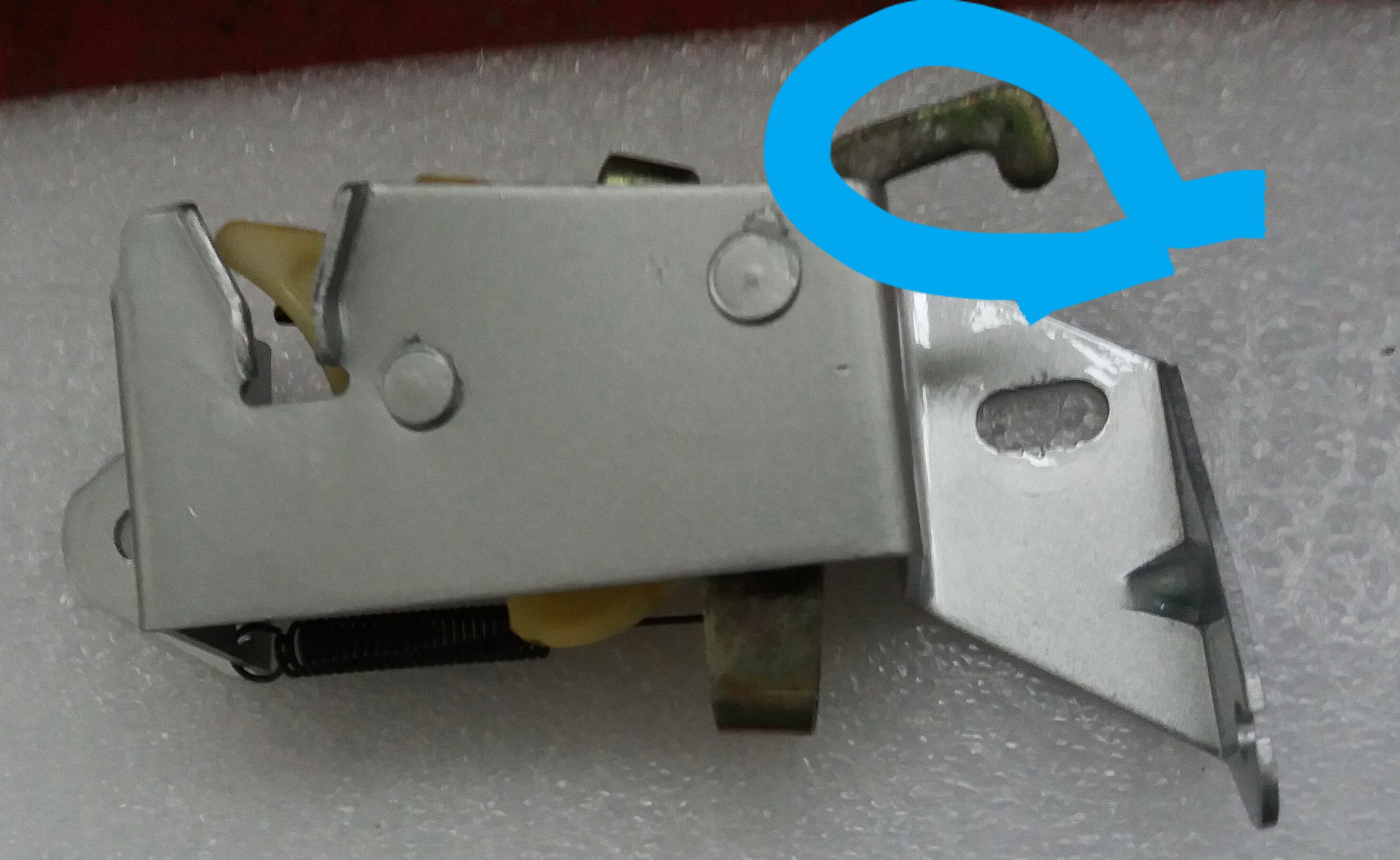 Por la parte de abajo subes un cable rigido con un gancho u ojal rigido tambien y tratas de pescar la palanca del mecanismo de apertura. No es dificil, abre a la primera, pero es incomodo de hacer.