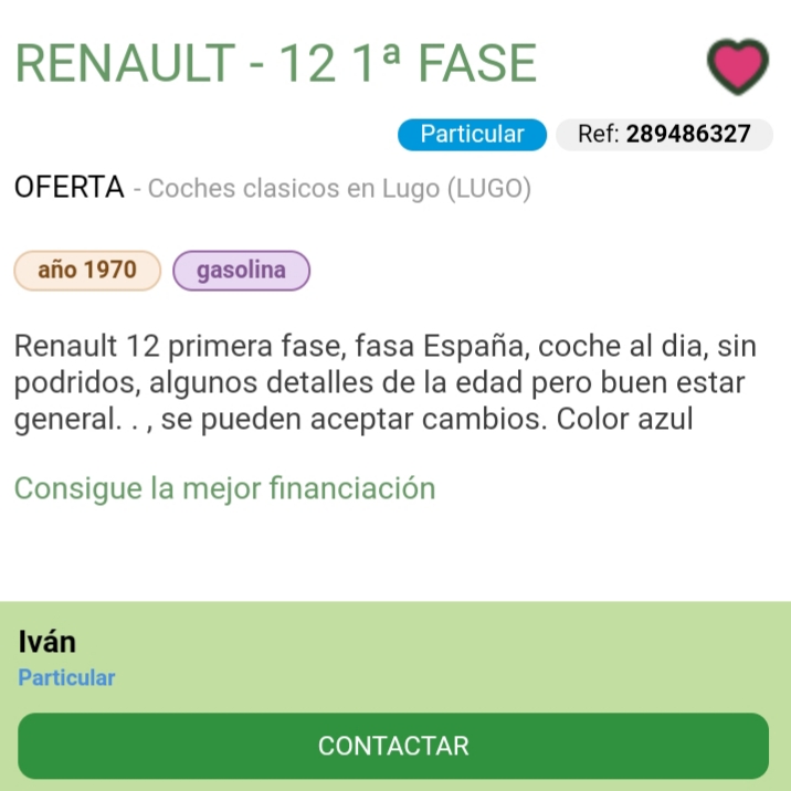 Conocí a su propietario en una concentración de clásicos en A Coruña. El coche rebosa elegancia por todos lados y está en un estado de conservación sin restaurar muy bueno. Opino que es una de esas unidades que ya se ven muy pocas.