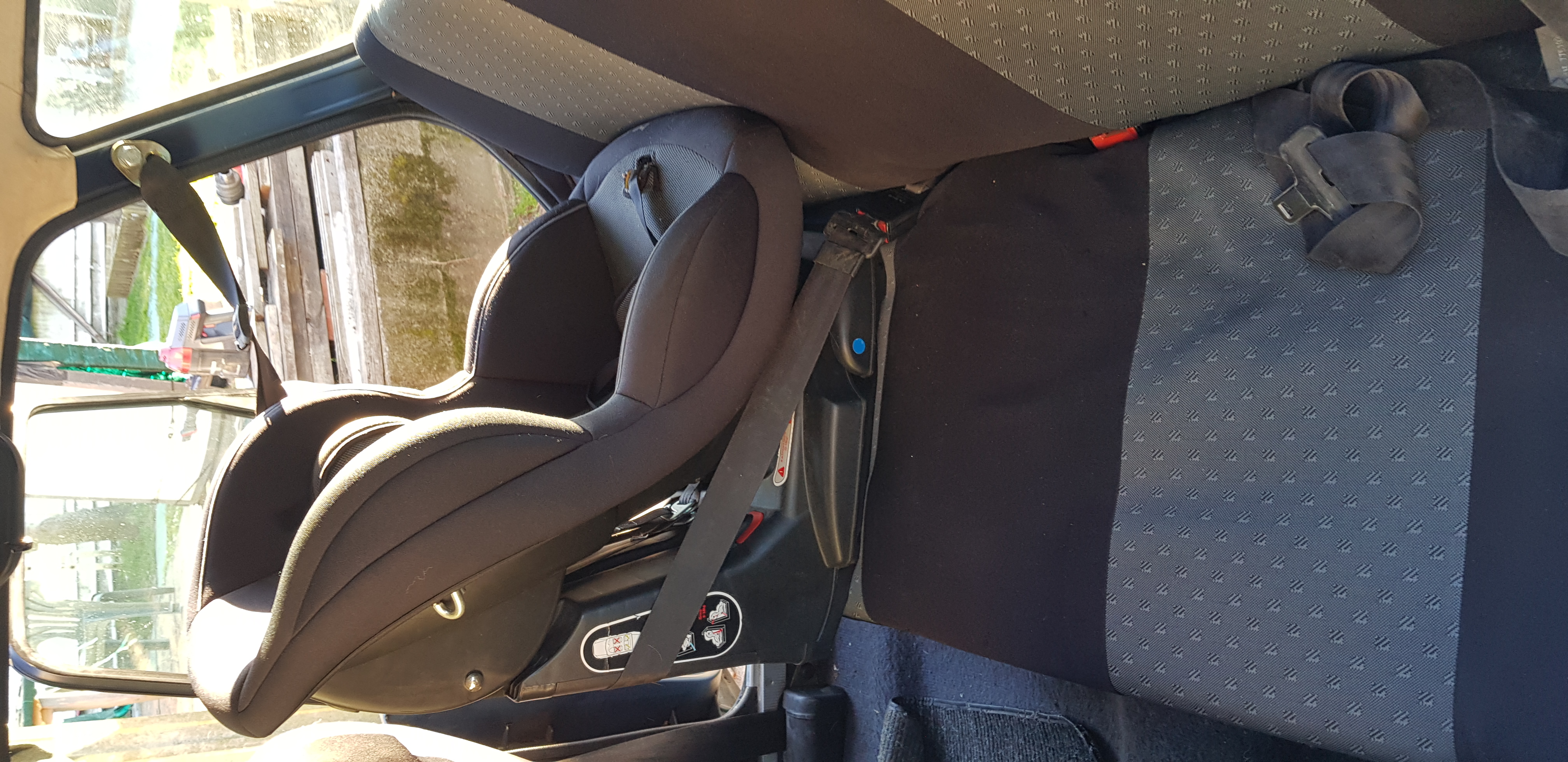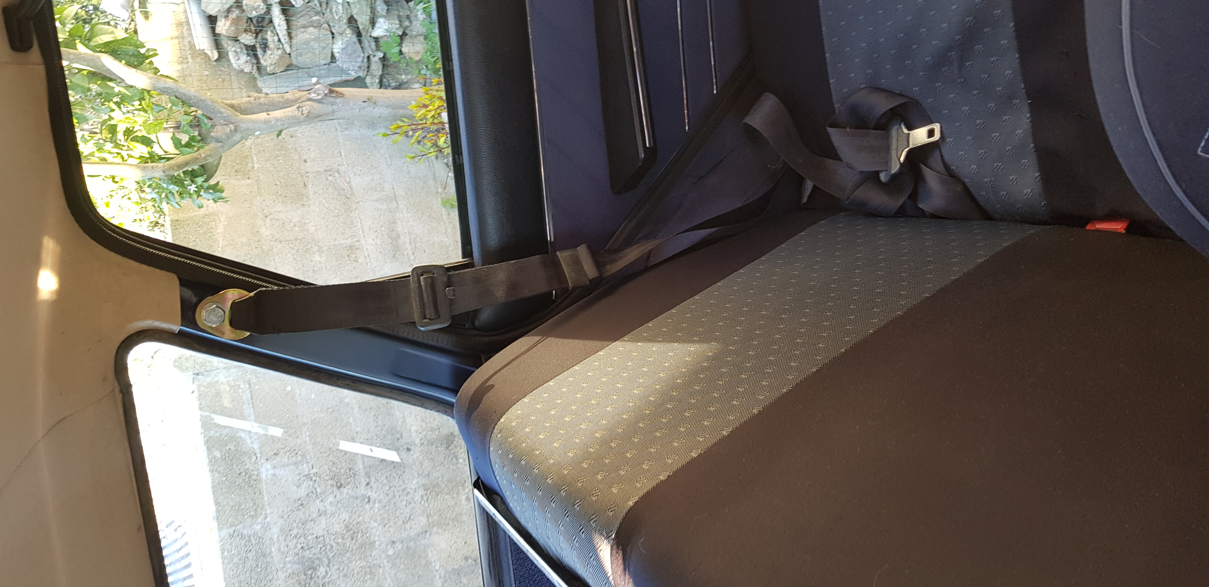 Y aparte, con unos cinturones muy largos de tres puntos, se podrían amarar los dos laterales pero con el anclaje en el pilar del portón. Que quedará muy raro ver tanto tramo de cinturón atravesando la luna de custodia....