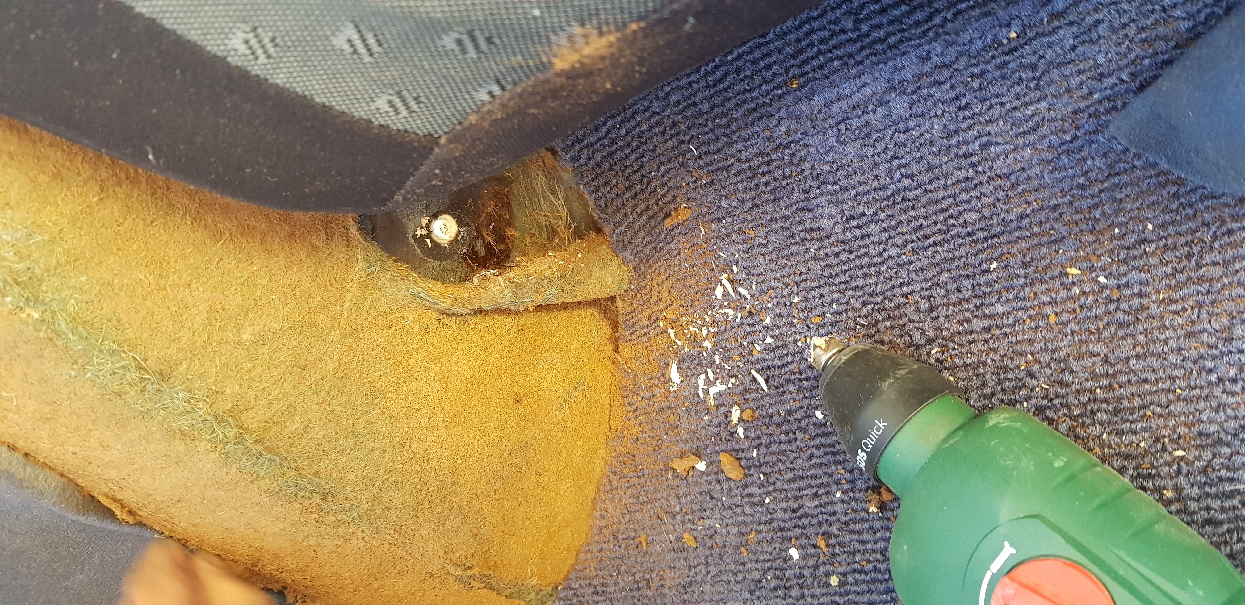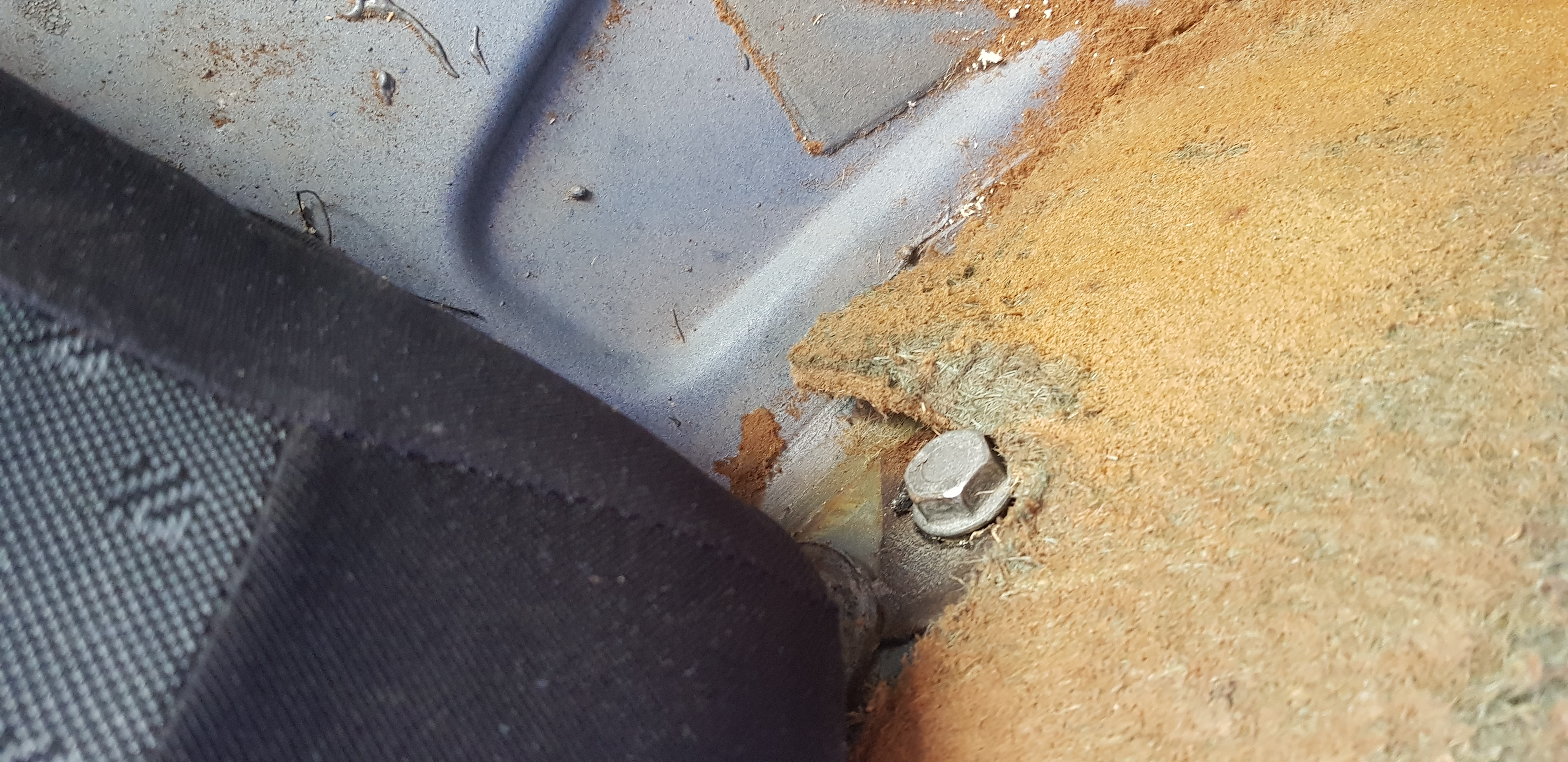 Se necesitan los tornillos de sujeccion del donante porque son de una metrica "especial" , lo mejor es ya que se cogen los cinturones tambien los tornillos. Aparte de estos tuve que ir a una tornilleria a por unos parecidos pero con tuerca , si mal no recuerdo me costaron 1 euro . Son estos Levantamos los asientos y donde esta el paso de ruedas trasero en la parte inferior delantera hay como una especie de tuerca que esta tapada por la pintura antigrava. con cuidado y un punzon hay que ir retirando esa pintura y una especie de cera que lleva. Digo con cuidado por culpa de no fastidiar la rosca, no es complicado de hacer. El mismo procedimiento lo repetimos en la parte central del asiento trasero , por debajo esta zona esta delante del deposito . Ahi se encuentran otras 2 Ahora atornillamos al lateral la parte baja del cinturon y en el centro , debajo del asiento , las cintas donde encajan los cinturones Lo siguiente es en el pilar hacer un agujero para que entre la tuerca y soldarla al pilar . Acordaros que para soldar la tuerca hay que proteger todo el interior y refrigerar toda la zona exterior e interior. Muchos direis que habria que soldar una placa de refuerzo pero yo lo hice asi y considero que esta bien hecho. Una vez soldado montamos el cinturon y listo Espero esto os sirva de ayuda
