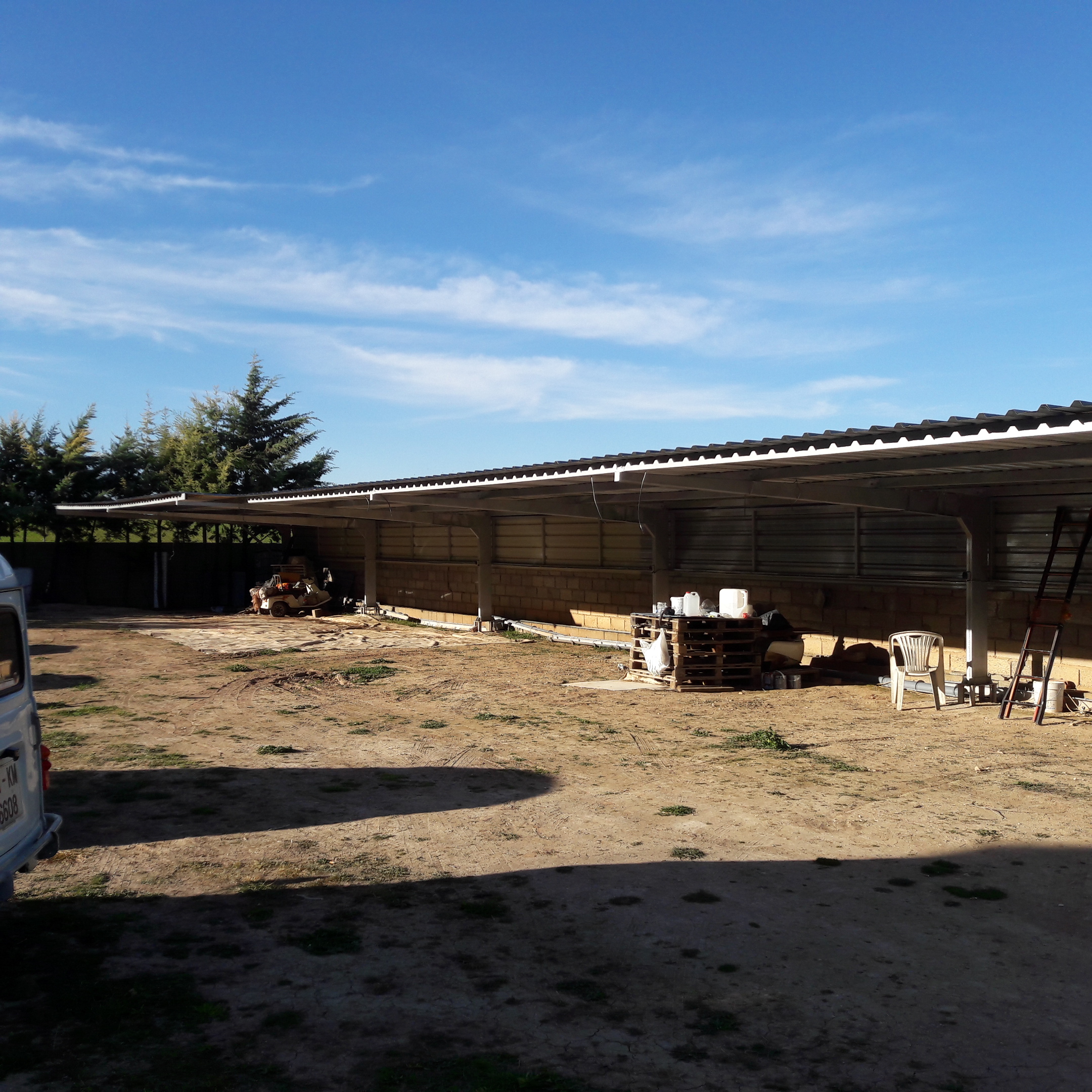Si me permites un consejo yo pondría un pilar cada 2 coches o así, para dar mas sujeción al tejadillo, es muy largo para solo tener soportes traseros y no le vendría mal unos pilares delanteros para reforzar, por si mas adelante pasa algo parecido ..
