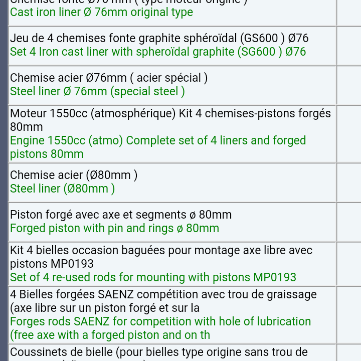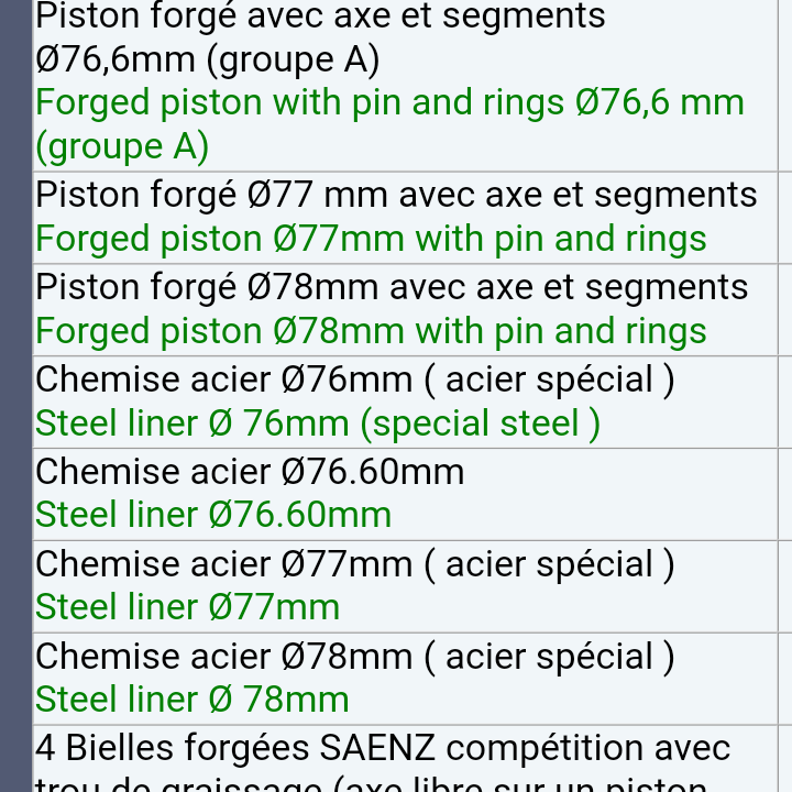 Volviendo al motor sierra FASA fabricó 2 tipos de bloque de mot con distintas medidas de altura y algunos cambios internos en el sistema de engrase primero se fabricó el de 72 de altura de pista y montaba un cigüeñal de línea fina de 72 de recorrido lo montaban R4 R5 R6 R8 R10 STAFETE Alpine 1100 R8TS posteriormente se fabricó un bloque de mot de mayor altura 77 de pista y con un cigüeñal de línea gruesa con un recorrido de 77 después salio el C2 que es el mismo con unas reformas estos bloques de mot nada tienen que ver con los que posteriormente fabricación otros países ni con el que monta el Máxi Turbo que fue rediseñado para poder subir la cilindrada esto quiere decir que con un cigüeñal con más de 77 los pistones subirían por encima del bloque Aquí en España es lo que tenemos.