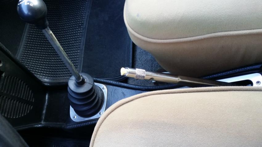 Falta la empuñadura del freno de mano.
