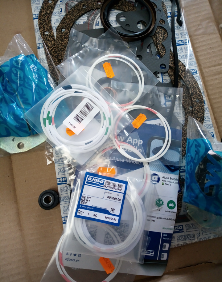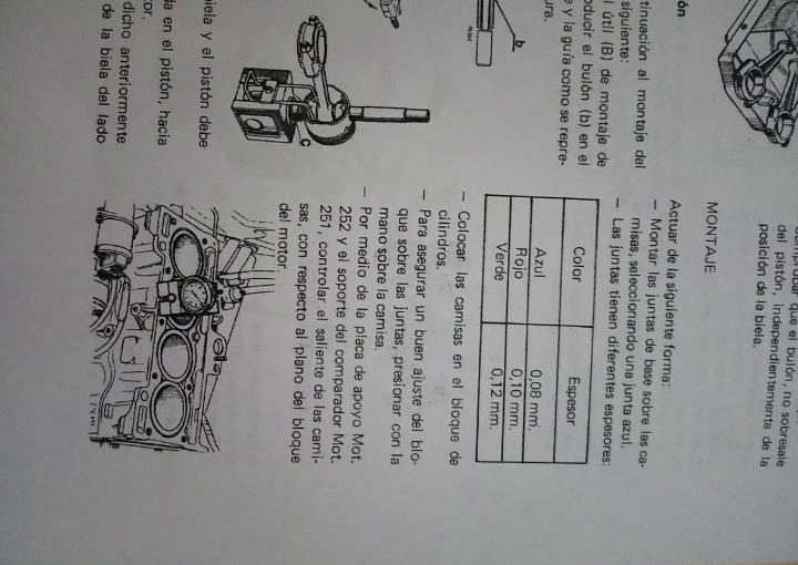 Después de hacer varias mediciones y comprobaciones me recomendaron meter el mismo equipo con todos los casquillos y segmentos nuevos y también decidieron de no tocar el cigüeñal ya que estaba en buenas cotas.Tenía otro conjunto nuevo preparado pero no original,así que se guardara para el futuro. Lo que más me hicieron sufrir y pensar eran las dichosas juntas de papel que asientan entre el labio de la camisa y la base asiento del bloque.Ya que tienen que dejar la camisa por encima del bloque entre 0,4 y máximo 0,12 era un follón para conseguir meterme en la cabeza que por ahí era imposible de que pase agua al aceite