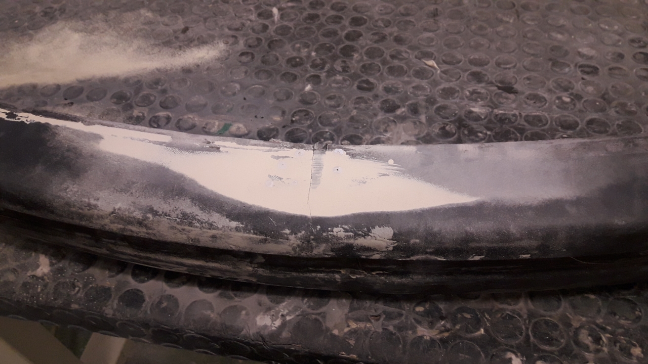 A esta no le fotografíe el proceso, la verdad es que tenia algo mas de miga que el proceso de la trasera, porque esta estaba partida por la mitad y tuve que reforzar con chapa, resina y fibra de vidrio.