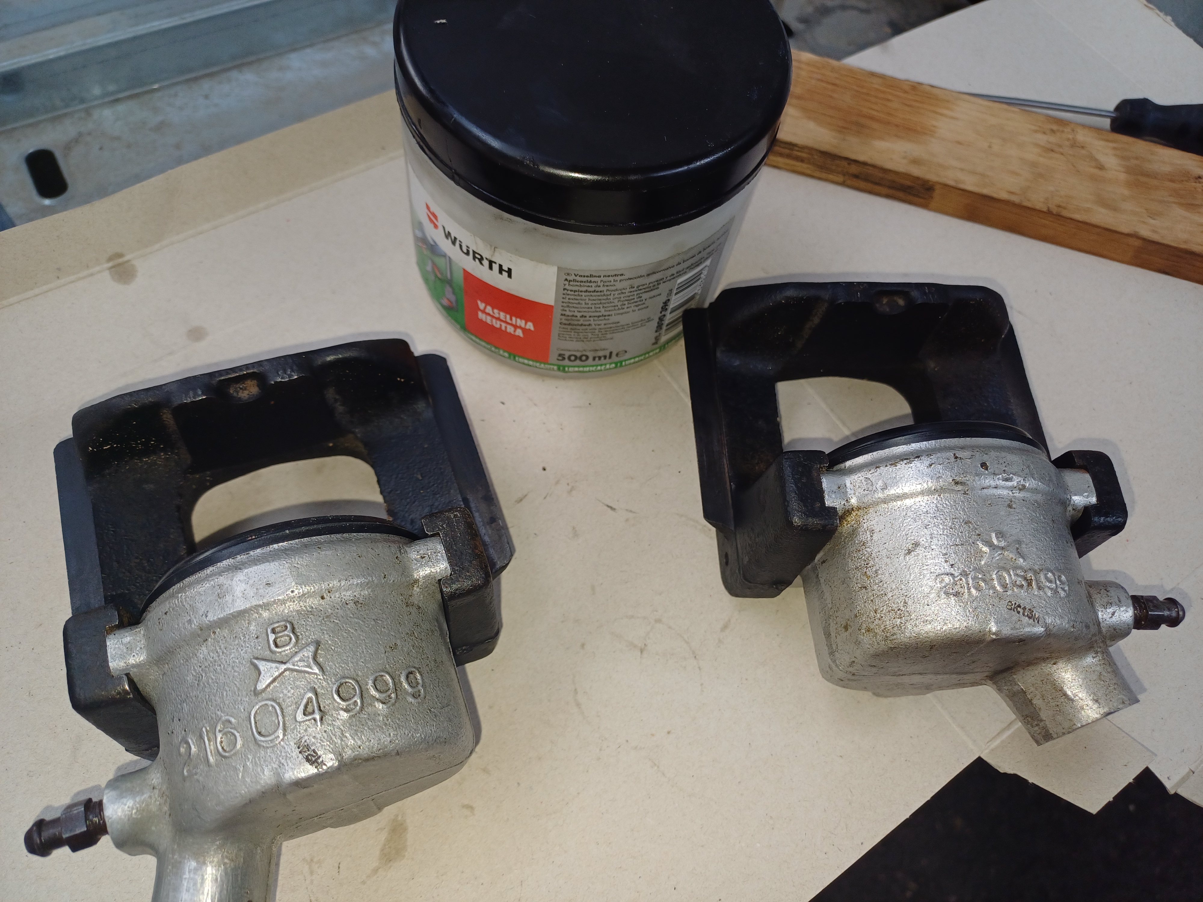 Los frenos delanteros a poco que se calentaban los discos,se quedaban medio agarrados y al final decidí desmontar y cambiar las juntas tóricas. Los frenos traseros de momento los pude desbloquear pero la ITV dirá si funcionan perfectamente o no.