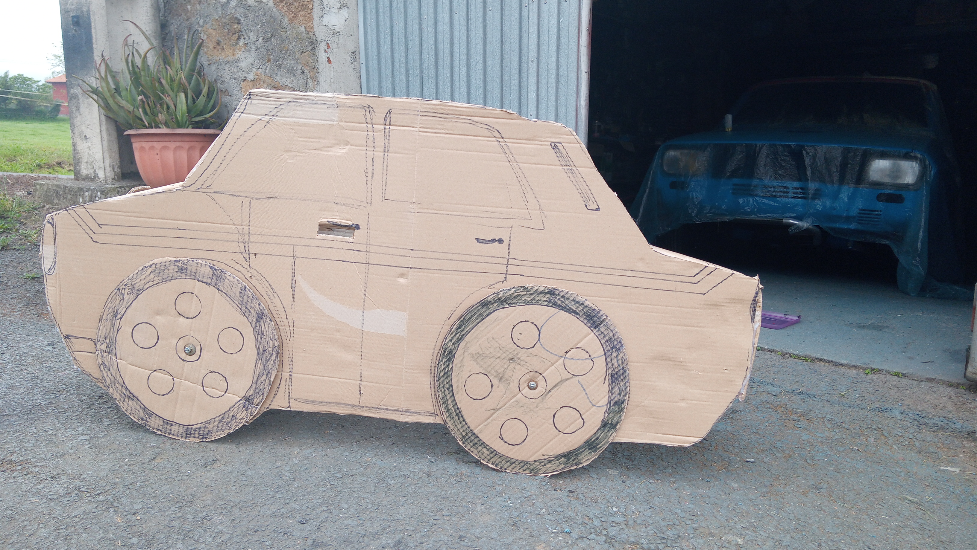 El confinamiento sigue y mi hija me pidió que hicieramos un coche con carton, asique no le iba a decir que no, asique mientras descansaba un poco del de Albertucho...